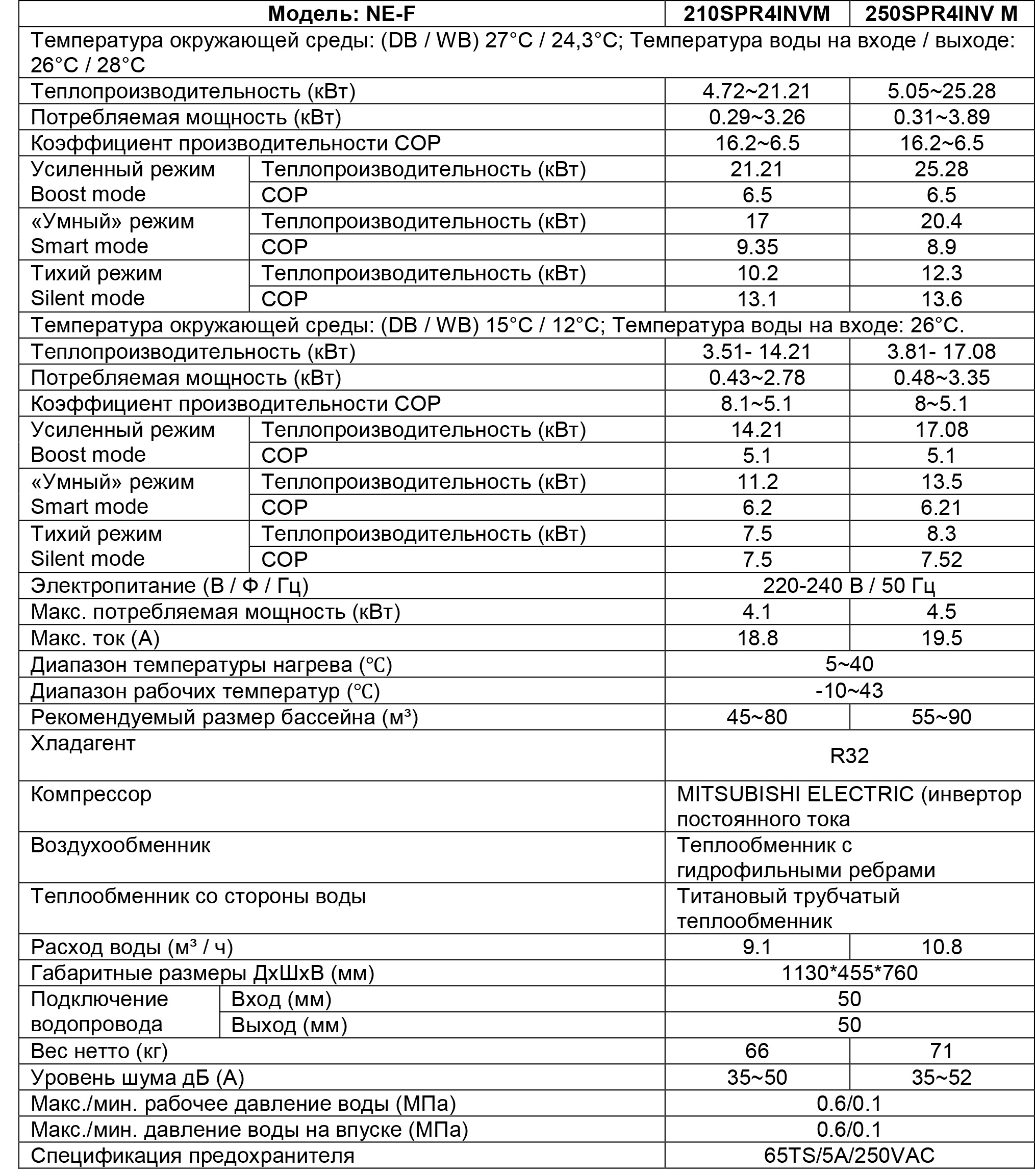 Потребляемая мощность: 0,29 - 3,26 кВт